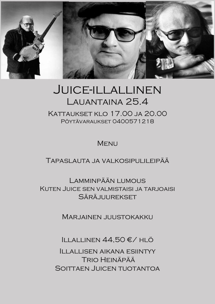 Illallinen 37,00€/ hlö. Teethän pöytävarauksen ennakkoon.
